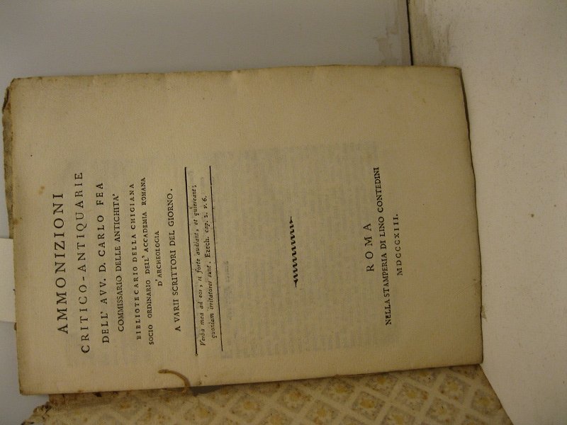 Ammonizioni critico-antiquarie dell'avv. D. Carlo Fea, Commissario delle antichita', bibliotecario della Chigiana, socio ordinario dell'Accademia Romana d'Archeologia