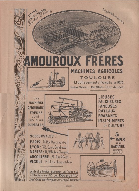 Amouroux freres machines agricoles Toulouse. Advertising 1928