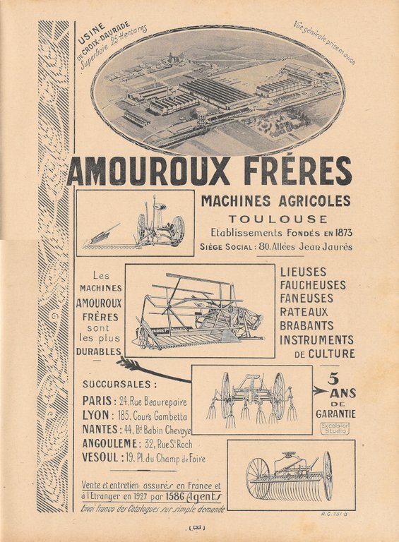 Amouroux Fréres Toulouse. Machines agricoles - Advertising 1928
