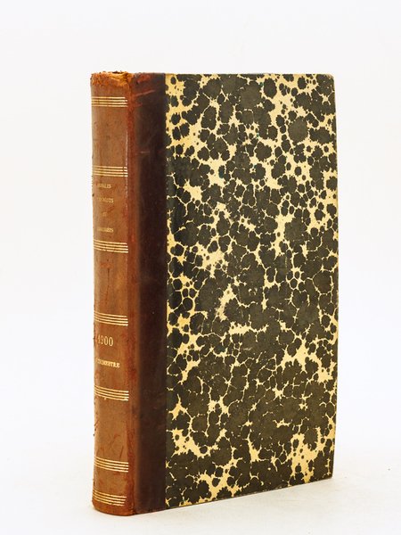 1 vol. in-8 reliure de l'époque demi-basane marron, Dunod, Paris, 1900, 477 pp. avec 6 planches dépliantes hors texte et plusieurs dépliantes in-texte [ Contient : ] Les Grands collecteurs de la Ville de Dijon par Charles Mocquery - Hydraulique Fluviale. Etude sur la Corrélation entrela Configuration du Lit et la Profondeur du Chenal dans l'Escaut maritime, par M. Fargue - De la Mer Baltique à la Mer Caspienne une voie de Navigation de 4000 kilomètres, par MM. Suquet et Fontaine - Notice sur l'Adduction des Eaux de l'Yonne pour l'Alimentation de Château-Chinon et l'Eclairage électrique de la Ville par M. Pochet - Notes sur la Construction du Pont Alexandre III, par résal et Alby. Troisième PArtie : Travaux Métalliques - L'éclairage électrique du Port de Bordeaux, par M. Paul Meunier - Epuration et Filtration des Eaux d'Alimentation de la Banlieue de Paris, par Veilhan et Regnard - Rapports sur le Frein à Air Comprimé Système Lipkowski - Note sur l'aménagement de l'entretien des Routes nationales par rechargements cylindrés et sur les résultats obtenus dans l'arrondissement du sud du département des Ardennes, par Perrin - Note sur l'explostion d'un récipient de vapeur survenue le 4 janvier 1898 dans une fabrique de caoutchouc à Halluin - Note sur la rupture d'un tube à fumée survenue le 26 novembre 1898 dans la sucrerie de Brabant Frères à Onnaing (Nord) Etat très satisfaisant (dos frotté, un feuillet fort. restauré).