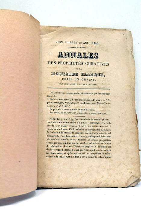 Annales des porpriétés curatives de la moutarde blanche, prise en grains, par une Société de philantrophes.