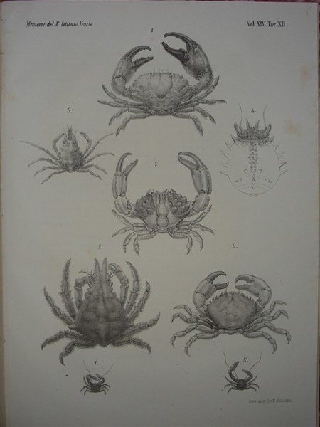 ANNOTAZIONI illustranti cinquantaquattro specie di crostacei podottalmi, endottalmi e succhiatori del Mare Adriatico, alcune delle quali nuove o male conosciute, accompagnate da trentadue figure litografate, e precedute dalla storia della carcinologia adriatica antica e recente.