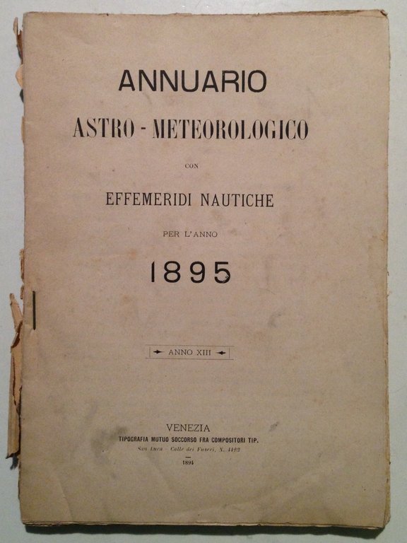 Annuario Astro Meteorologico con Effemeridi Nautiche anno 13 1895 Venezia 1894