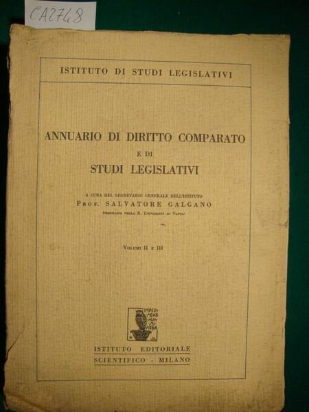 Annuario Bollettino dell'Istituto di Studi Legislativi - Annuario di diritto comparato e di studi legislativi - Vol. I (nel primo tomo) - Voll. II e III (nel secondo tomo)