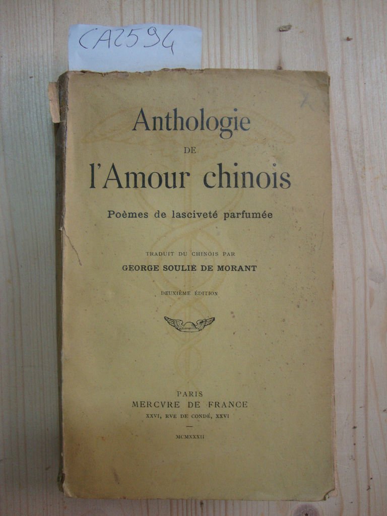 Opera in lingua francese, testo tradotto dal cinese a cura di Geoges Soulié De Morant, con tavole che contengono ideogrammi cinese in b.n. f.t - DETTAGLIO DELLE CONDIZIONI : Segni d'uso ai piatti della coperta con alcuni segni a matita colorata ed alcuni marginali strappetti, piatto posteriore ed alcune delle ultime pagine con segni da erosione da insetto - (37e).