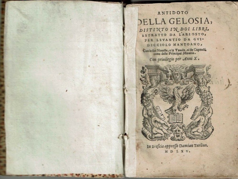 Antidoto della gelosia, distinto in doi libri, estratto dall'Ariosto per Levantio da Guidocciolo Mantoano