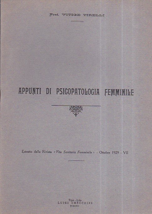 Appunti di psicopatologia femminile. Estratto dalla Rivista 'Vita Solitaria Femminile' - Ottobre 1929