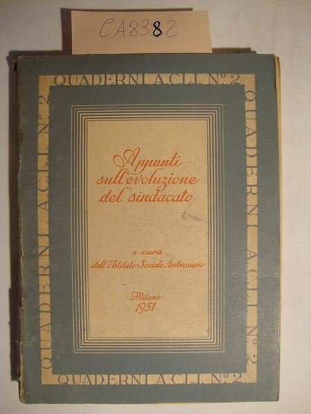 (Collana : Quaderni A.C.L.I. - n. 2) A cura dell'Istituto Sociale Ambrosiano - DETTAGLIO DELLE CONDIZIONI : Segni d'invecchiamento in coperta con fioriture, strappi al dorso ed alcune macchie. Coperta staccata dal volume. Alcune macchie alle pagg. di guardia - .