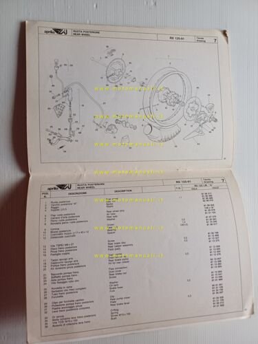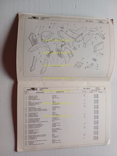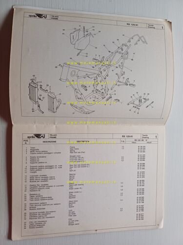 Aprilia 125 RX 1991 catalogo ricambi TELAIO originale FRAME parts catalog