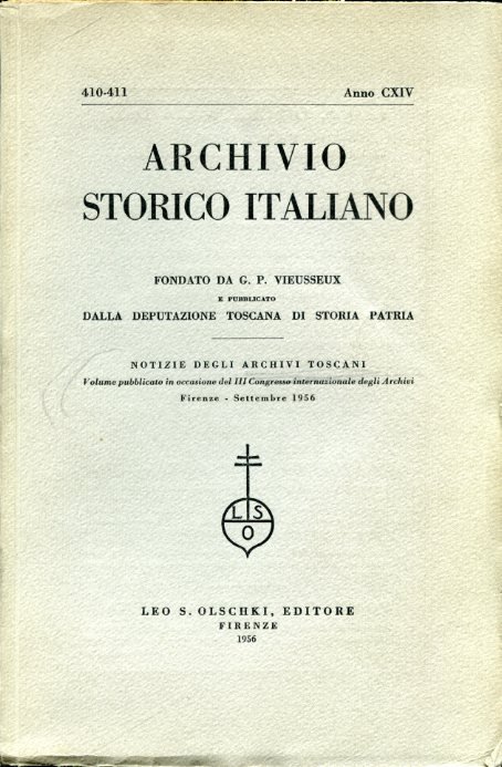 Archivio Storico Italiano fondato da G. P. Vieusseux. 410 - 411. Anno CXIV. Notizie degli archivi toscani. Volume pubblicato in occasione del III Congresso internazionale degli Archivi. Firenze - Settembre 1956