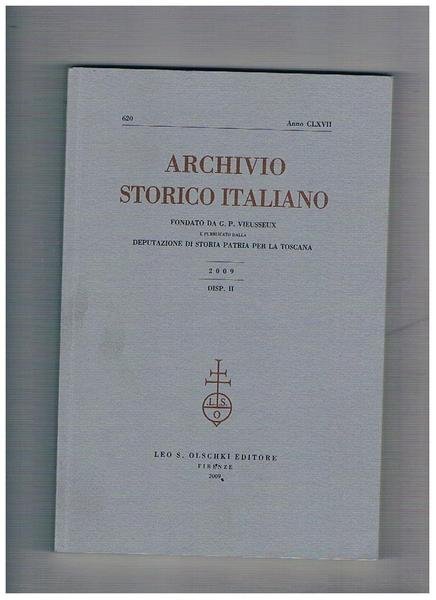 Archivio storico italiano, trimestrale fondato da G. P. Viesseux. Anno 2009 disp. n° 2. Contiene: le rappresaglie nei comuni italiani del trecento: il caso fiorentino a confronto; le confeaternite del riscatto nella Toscana di età moderna: il caso di Firenze; ecc.