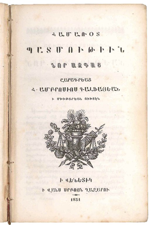 [armenice] Hamaṛōt patmutʻiwnkʻ hin ew nor azgats: Saragreac‘ H. Ambrosios Galfayean İ Mxit‘arean Uxten ["A brief history of new nations. Composed by Ambrosios Galfayean of the Mekhitarist Order"]