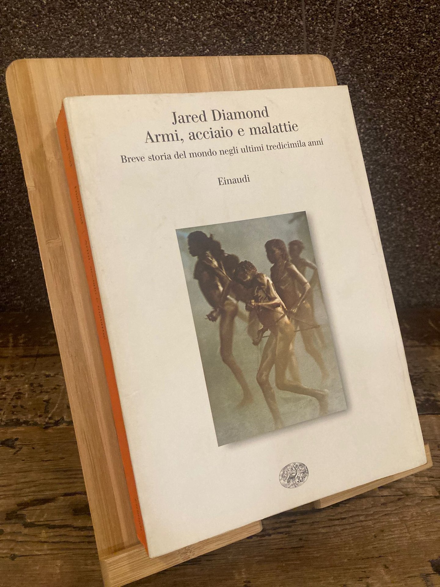 In-8° (22x16 cm), pp.XIV, 366 (4), brossura editoriale con titoli al dorso e al piatto, risvolti paratestuali. Figure b/n nel testo e 32 illustrazioni fotografiche b/n in tavole f/t. Saggi, 821. Lievi segni del tempo e d' uso, minimi difetti. Una dedica alla carta bianca anteriore. Buon esemplare. Edizione italiana dello studio di Diamond vincitore del Pulitzer (1998) e rapidamente divenuto un nuovo classico della riflessione sul' evoluzione biologica e culurale della specie umana. Ampia bibliografia ragionata e indice analitico.