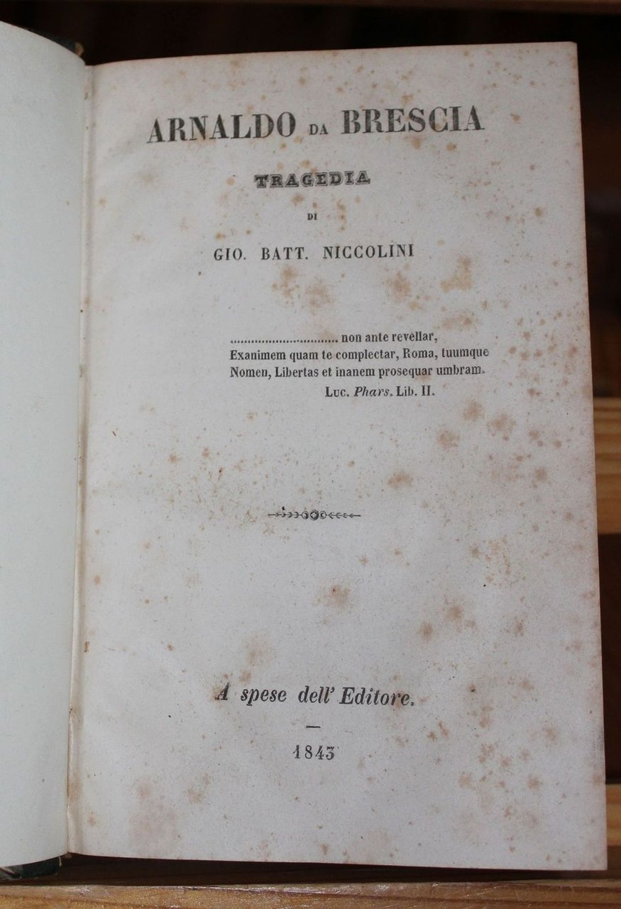 In 16°, pp. 427. Mezza pelle dell'epoca. Dorso liscio con titoli e fregi romantici oro. Qualche fioritura. Contraffazione, probabilmente stampata a Lugano, dell'edizione originale di Marsiglia, che però aveva 408 pagine.