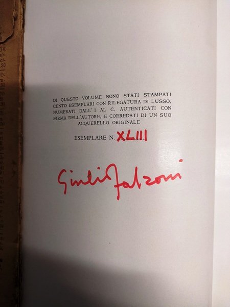 8° legat. edit. piena pelle tit. e fregi oro, entro cofanetto, (lieve spellat. al dorso) pp. 350, con 50 tavole a colori e in nero. Ediz. di pregio di soli 100 esemplari numerati, autenticati con firma dell'autore e corredati con un suo acquerello originale a colori fuori testo. Es. n. XLIII. Esemplare molto buono.