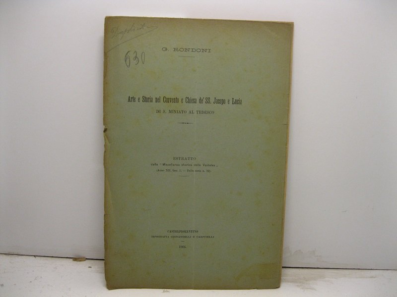 Arte e Storia nel Convento e Chiesa de' SS Jacopo e Lucia di S. Miniato al Tedesco Estratto dalla 'Miscellanea storica della Valdesa' (Anno XII, fasc. 1 della serie n.32)