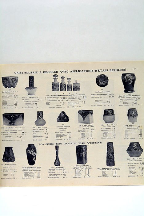 86 pages. (32x24 Cm). Broché. Couverture imprimée et illustrée par des motifs floraux en mauve. Déchirures importantes en dos. Très légères rousseurs. Joli catalogue largement illustré en noir et blanc. Bon état.