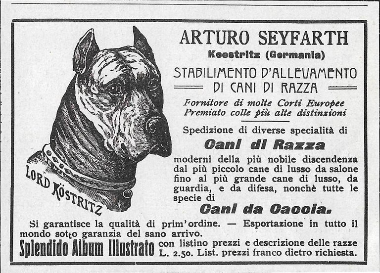 Arturo Seyfarth. Cani di Razza. Advertising 1912