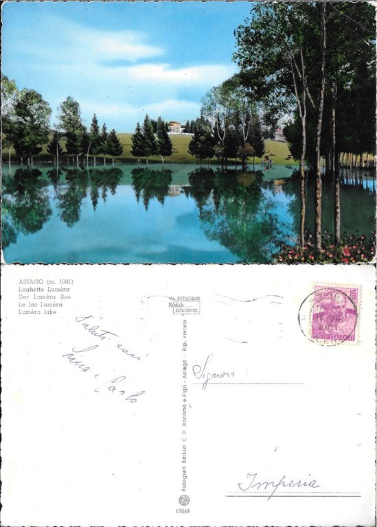 Asiago. Laghetto Lumèra. Viaggiata 1961
