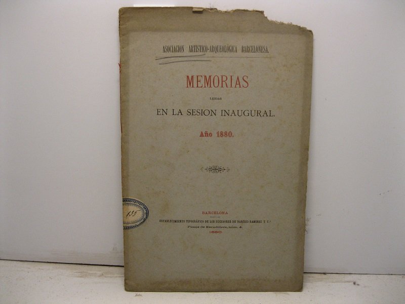 Asociacion Artistico-Arquelogica Barcelonesa. Memorias leidas en la sesion inaugural. Ano 1880.