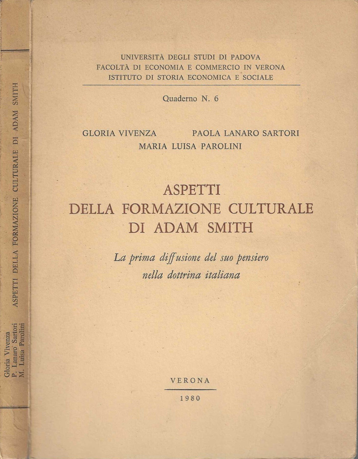 Aspetti della formazione culturale di Adam Smith. La prima diffusione del suo pensiero nella dottrina italiana