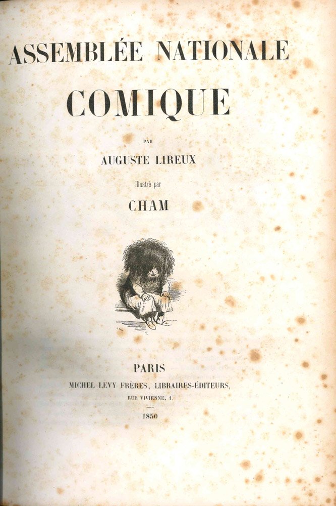 LIBROEdizione originale.Carte fiorite ma nel complesso più che buon esemplare con bella legatura coeva. Timbro e pecetta di possesso alla prime e all’ultima carta.Opera satirica pubblicata nel 1850 con testi del giornalista Auguste Lireux e illustrazioni del disegnatore e caricaturista Amédéee de Noé, noto con lo pseudonimo Cham. Oggetto di questo imponente volume è l’Assemblea Costituente francese - eletta attraverso il primo suffragio universale (maschile) nell’aprile del 1848 - qui trasformata in “Assemblée Nationale Comique”. Il risultato è una ricca galleria dei nuovi personaggi politici e della vita parlamentare passati in rassegna con le armi dell’umorismo e della comicità.