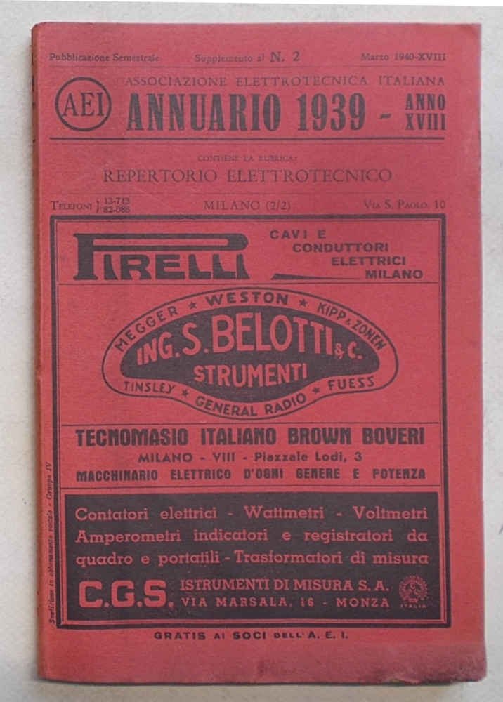 Associazione Elettrotecnica Italiana. Annuario 1939. Supplemento alla parte seconda.