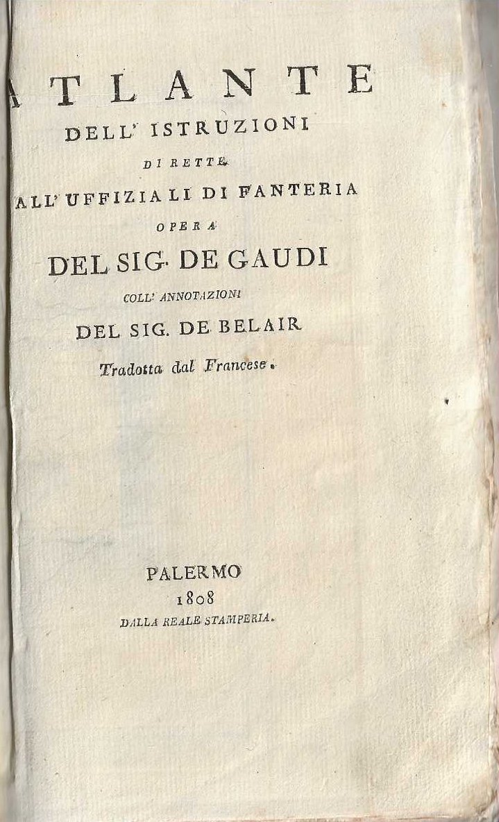 Atlante dell'istruzioni dirette all'uffiziali di fanteria opera del sig de gaudi coll'annotazioni del sig. de belair tradotta dal francese