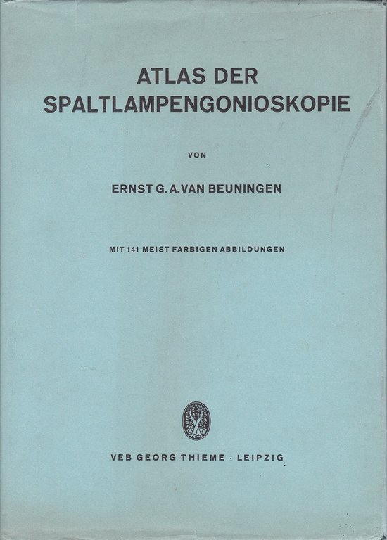 Mit 141 meist farbigen Abbildungen. Als Beilage ein Sonderdruck aus "Glaukom": "Spaltlampengonioskopie in der Diagnose und Operationsindikation des Glaukoms" des selben Autors, diese mit handschriftlicher Widmung des Verfassers.