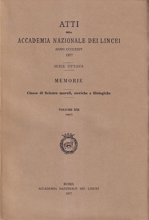 Atti della Accademia Nazionale dei Lincei. Anno CCCLXXIV, 1977. Serie Ottava: Memorie. Classe di Scienze morali, storiche e filologiche, Vol. XXI