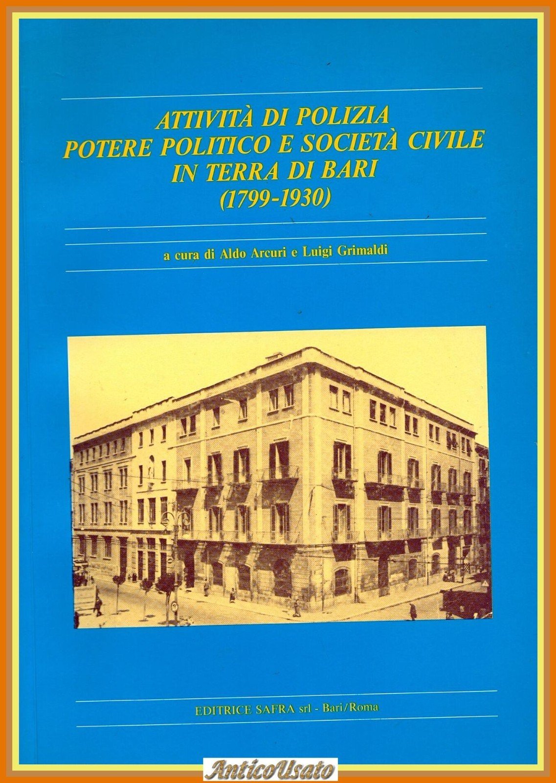 ATTIVITÀ DI POLIZIA POTERE POLITICO E SOCIETÀ CIVILE IN TERRA DI BARI (1799 - 1930) a cura di Aldo Arcuri e Luigi Grimaldi. Editrice SAFRA, 1986. 174 pagine. Copertina editoriale in brossura. Stato di conservazione: molto buono (pagine normalmente ingiallite, dedica anonima forse di uno dei due curatori) Libro usato saggistica storia locale