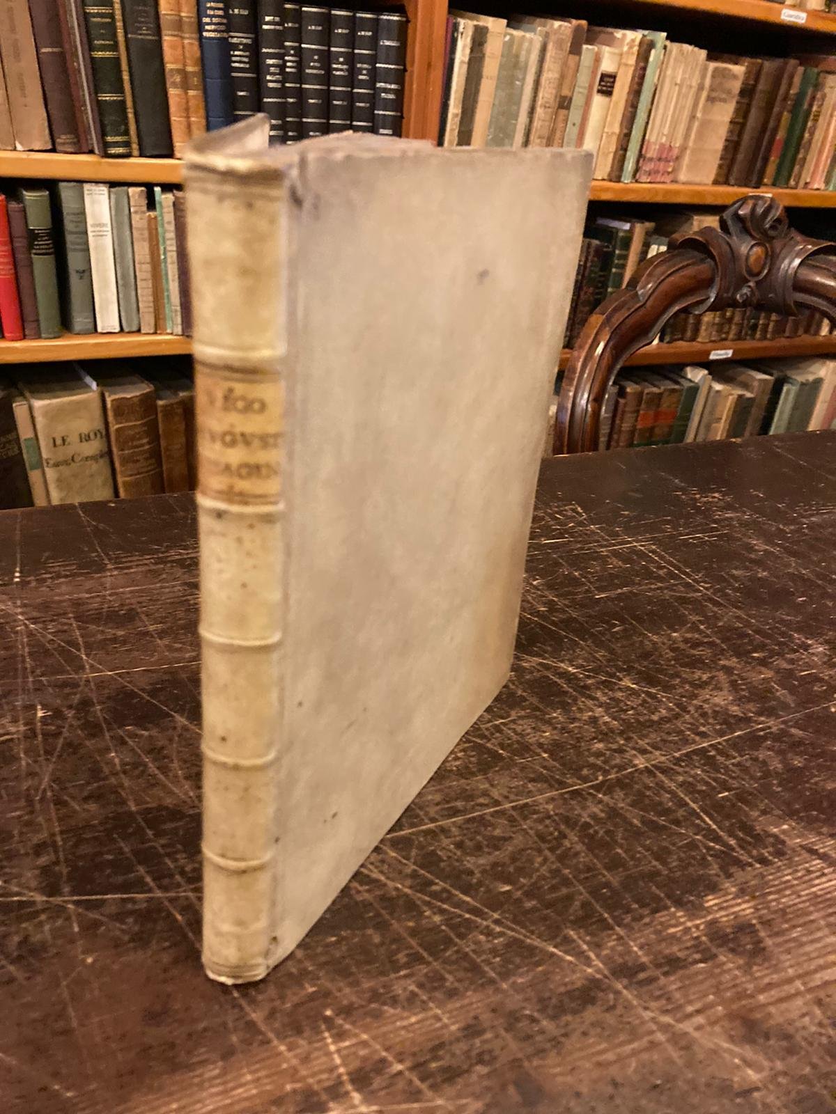 In-4° (215x175mm), pp. (16), 192, (4), legatura coeva p. pergamena rigida con unghie e titolo in oro su tassello al dorso. Tagli colorati a spruzzo. Frontespizio inciso in calcografia con un motivi ispirati alla tradizione figurativa dell'arte romana. Dedica a stampa del Du Val ad Antoine de Lomenie, consigliere del Re di Francia. Testatine e capilettera ornati xilograficamente. 63 tavv. incise su rame a piena pagina, di pretto gusto manierista, con ritratti di imperatrici romane e di membri femminili della famiglia imperiale. Numerose riproduzioni n.t. di monete romane di età imperiale. In fine, elenco degli imperatori romani e privilegio di stampa; explicit tipografico al colophon. Al contropiatto, etichetta della Taylor Institution con certificazione di dono alla stessa da parte di Robert Finch del Balliol College di Oxford e timbro di alienazione da tale raccolta; il donatore, il reverendo Robert Finch (Londra, 1783-Roma, 1830) fu noto studioso di antichità e di archeologia, amico di Shelley, grande collezionista di libri e di opere d'arte antica. Nota di possesso in data 1758 al contropiatto. Bruniture e arrossature sparse, aloni al margine inferiore di numerose cc., ma buon esemplare nel complesso. Pregevole edizione seicentesca parigina della versione latina delle 'Immagini delle donne Auguste' (Venezia, 1557) di Enea Vico (Parma, 1523-Ferrara, 1567) reimpresse con svariate modifiche per le cure del Du Val. Cfr. (edizioni cinquecentesche): Mortimer, 533. Brunet, V, 1175. Adams, V634. Cicognara, 3058. Borroni, 1954, II/VI, n. 13.583/3. Olschki, 5458 e passim. Bartsch, 257-319 e 321: 'Toutes ces pièces sont gravées avec le plus grand soin, et peuvent être comptées parmi les plus belles choses qu'Enée Vico nous a laissées en gravure'. Renouard, p. 176. Guilmard, p. 289.
