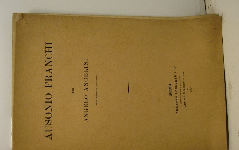 In 8, pp. 73 + (3b). Dedica autogr. dell'A. all'occhietto. Due piccoli forellini di tarlo al marg. est. delle ultime 4 cc. D. rifatto. Br. ed. Monografia critica relativa alla vita e all'opera di Cristoforo Bonavino, nato a Pegli nel 1821, meglio conosciuto con lo pseudonimo letterario di Ausonio Franchi. Prete cattolico, fu un libero pensatore razionalista. Nel 1849 lascio' l'abito talare per divenire sostenitore del razionalismo e dedicarsi ad una vivace attivita' politica e filosofico-letteraria.