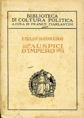 In-8°, pp. 187, brossura editoriale con vignetta disegnata da Cisari e titolo in rosso e nero entro filettatura tipografica. Impresa tipografica al titolo. In barbe, con ingialliture lievi e un restauro al margine inferiore della brossura. Volume di pubblicistica, compreso nella 'Biblioteca di coltura politica' a cura di Franco Ciarlantini, con capitoli sull'idea di romanità in Dante, su un episodio della politica di Leone XIII, sui concetti di stato, patria e nazione, sulla genesi storica del fascismo. Il Bodrero (Roma, 1874-ivi, 1949), pubblicista e statista, fu professore ordinario di storia della filosofia all'Università di Padova (1916-1940), professore di storia e dottrina del fascismo all'Università di Roma (1940) e di storia moderna sempre all'Università di Roma, nonché Presidente della SIAE (1936-1938), membro del Consiglio superiore dell'educazione nazionale, Vicepresidente della Camera (1929-1934) e Sottosegretario di Stato al Ministero della Pubblica Istruzione (1926-1928) e al Ministero della Educazione Nazionale (18 febbraio-15 maggio 1941).