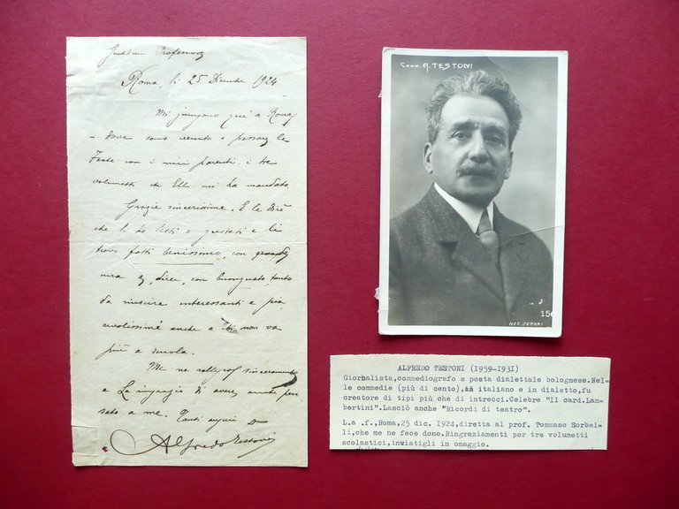 Autografo Alfredo Testoni Lettera Roma 25/12/1924 Sorbelli Commediografo