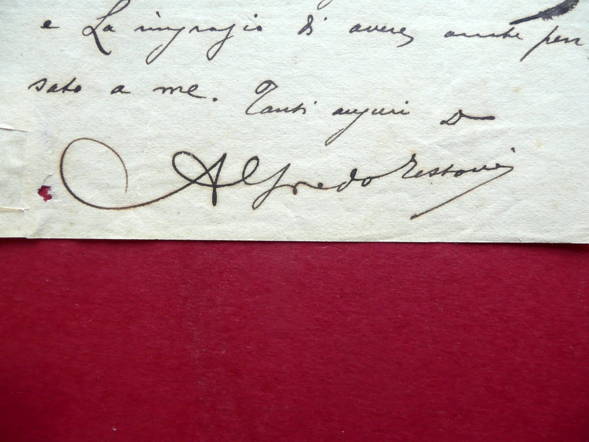 Lettera autografa, Alfredo Testoni (1859 - 1931) Lettera autografa firmata datata Roma, 25 dicembre 1924 Lettera autografa firmata su foglio in carta; testo ad una facciata, con firma autografa al termine del testo. Cm 21x11,5. Acclusi uno schedino descrittivo del precedente collezionista e una fotocartolina in b/n, non viaggiata. Condizioni di conservazione Esemplare ben conservato con tracce d'uso, normale piega centrale di spedizione, poche minime bruniture, un margine esterno con un paio di minime mancanze restaurate mediante l'applicazione di piccola striscia di carta; retro di un margine con piccole tracce di nastro adesivo; un paio di minuscole mancanze e un minimo strappetto alla parte inferiore, senza perdite di testo. Per maggiori informazioni vedi foto schedino. SC03.D15397 N
