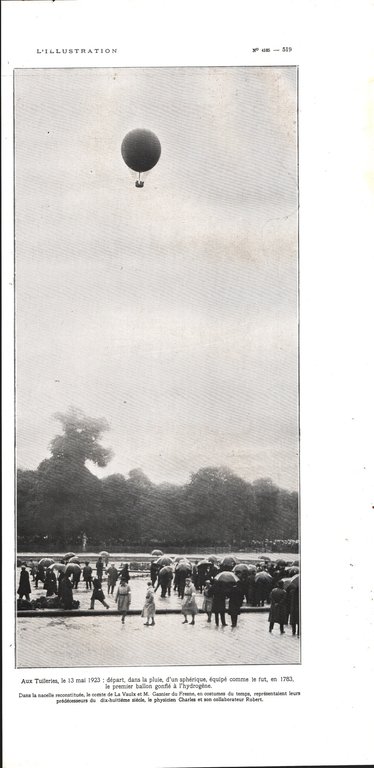Aux Tuillerie depart d'un sferique, le premier ballon gonfie a hydrogene. Immagine 1923