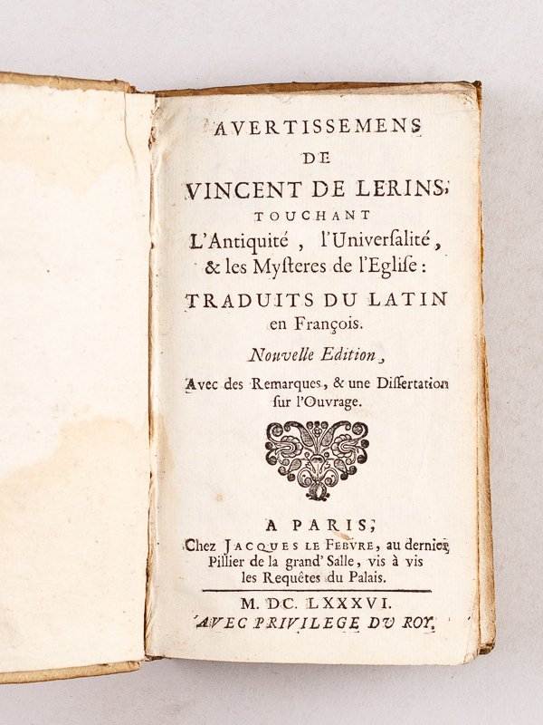 Avertissemens de Vincent de Lérins, touchant l'Antiquité, l'Universalité, & les Mystères de l'Eglise : traduits su latin en François.