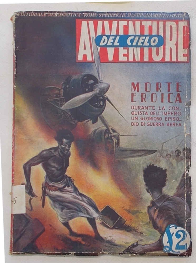 In 8° (cm. 24,5 x 17); pagg. 72; con numerose illustraz. n.t.; bella brossura origin. figur. a colori di C. Caesar. VG-. ** Vennero pubblicati 24 numeri del mensile "Avventure del Cielo", dall'aprile del 1939 al 1941. Puntava ovviamente sugli aspetti "avventurosi" dell'aeronautica, ma non era rivolta esclusivamente a un pubblico giovanile. La "storia di copertina" di questo numero è: "Morte eroica durante la conquista dell'Impero- Un glorioso episodio di guerra aerea." Da segnalare anche un lungo articolo sulle "avventure dei collaudatori".