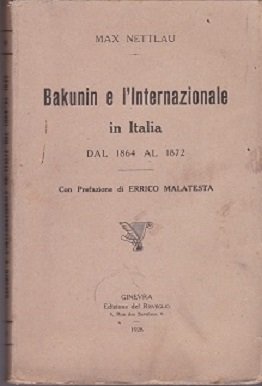 In-8°, pp. XXXI, 397, (3), brossura editoriale. Ottima copia. Prima edizione. Importante studio su Bakunin e su anarchismo e socialismo in quasi un decennio di storia italiana postunitaria compiuto dallo studioso che fu definito dal Rocker 'l'Erodoto dell'anarchia'. 'Gli anni di cui si tratta in questo libro, se non furono, nella vita dellInternazionale italiana, i più ricchi di avvenimenti clamorosi, riescono nullameno i più interessanti della sua storia, poichè fu in quel periodo di tempo che si elaborarono e si fissarono le idee ed i propositi che spiegano tutto ciò che avvenne dopo in Italia, non solo nel seno dellInternazionale propriamente detta, ma anche nel movimento anarchico che dallInternazionale prese le mosse. E bisogna esser grati al compagno Nettlau per lo zelo con cui ha raccolto intorno a quellopera documenti rari e preziosi che senza di lui sarebbero stati ignorati e forse, almeno in parte, sarebbero andati perduti per sempre. Dopo il 1872 e precisamente dopo la Conferenza di Rimini (agosto 1872) ed il Congresso internazionale di Saint-Imier, Svizzera (settembre 1872), che furono come la conclusione di tutto il lavoro preparatorio, lInternazionale, che si sviluppò in Italia quando altrove era già moribonda, vi visse per diversi anni una vita intensa e tormentata. Si fece larga propaganda didee, si costituirono numerosi gruppi («sezioni» come si diceva allora) e federazioni; vi si tennero congressi nazionali e provinciali: si fecero tentativi insurrezionali seguiti da processi celebri, che conquistavano aglinternazionalisti le simpatie del pubblico.' (dalla prefazione di Malatesta).