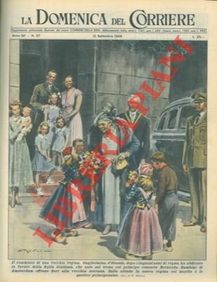 Bambini di Amsterdam offrono fiori alla vecchia regina Guglielmina d'Olanda che abdica in favore della figlia Giuliana.