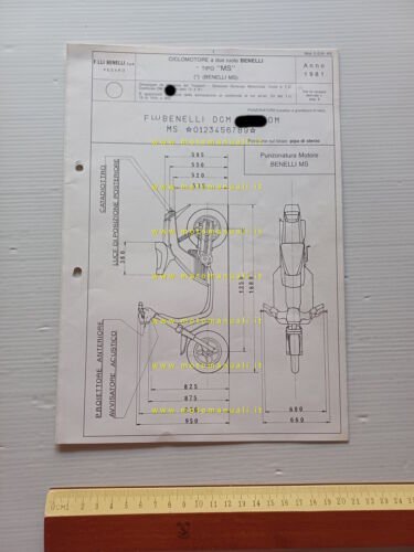 Benelli S 50 Scooter 1981 scheda omologazione DGM Facsimile originale