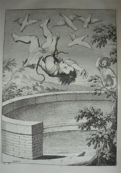 2 parti in un vol. in-4, pp. (16), 346, (2), 128, leg. p. perg. coeva con tit. mss al d. Tagli color. Antip. inc. in rame. Front. con marca tipogr. in rame comprendente una veduta della città di Bologna. Ritr. dell’A. Con una tab. rip. raff. iscrizioni lapidarie, inserita nell’apparato delle note anzichè dopo la c. N2. Con 15 gr. final. e 20 gr. tavv. finemente inc. in rame da Lodovico Mattioli, una per ogni canto. Prima ediz. dell’opera più imp. del Croce (1550-1620) trasportata in versi da G. P. Riva, P. B. Balbi, G. P. Zanotti e altri, con note di G. A. Barotti. Le incisioni che illustrano il testo sono di invenzione del Mattioli tranne per alcune che sono copie, ma con differente sfondo, di dipinti di G. Maria Crespi. Il più bel testo figurato dell’editoria settecentesca bolognese. Brunet I, 820. Gamba 2156: “.di vari begl’ingegni sono i venti Canti, e tra questi si annoverano i due Zanotti, il Baruffaldi, il Zampieri, l’Amadesi, Flaminio Scarselli, etc.”. Brunet I, 820. Cicognara 1083. Canterzani, Catalogo dei libri. dei Dalla Volpe, 1736.16. Ex libris nobiliare. Picc. restauro all’antip. Front. legg. più corto in basso di alcuni mm., ma ottimo esempl. a larghi margini in leg. orig.