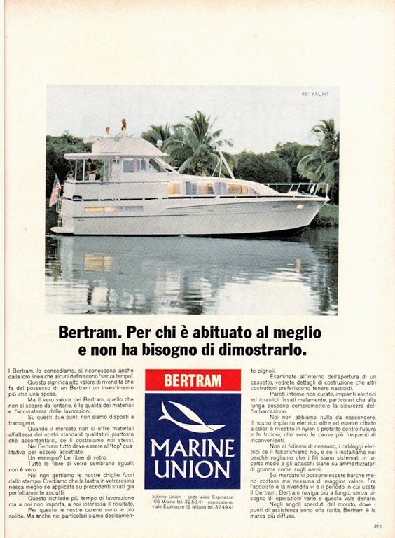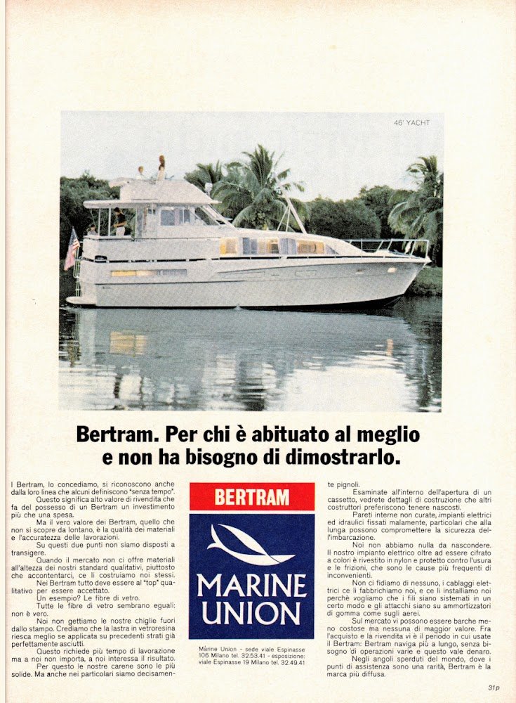 Bertram Marine Union. Advertising 1974