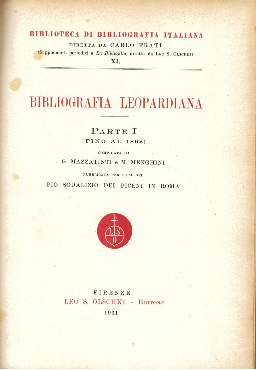 Bibliografia leopardiana. Parte I (fino al 1898)