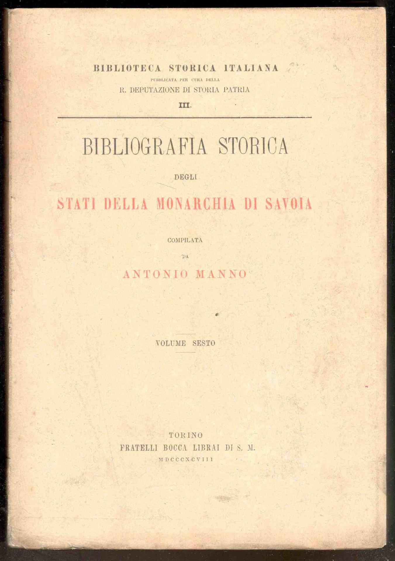 Bibliografia storica degli stati della Monarchia di Savoia. Volume VI (Genova)
