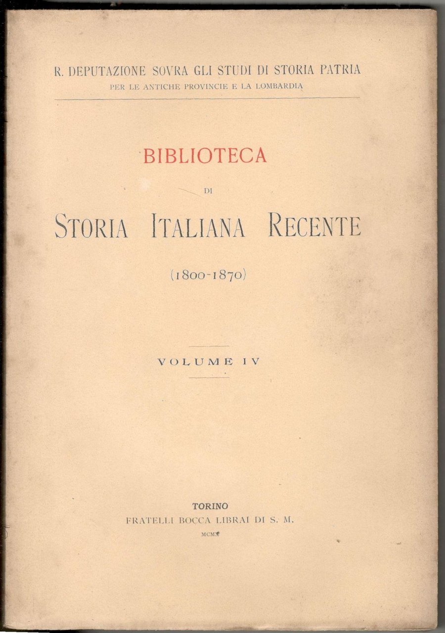 Biblioteca di storia italiana recente (1800-1870). Volume IV
