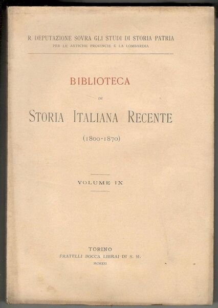Biblioteca di storia italiana recente (1800-1870). Volume IX