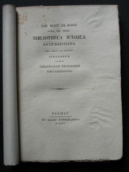 BIBLIOTECA JUDAICA ANTICHRISTIANA. Qua editi et inediti Judaeorum adversus Christianam religionem libri recensentur.