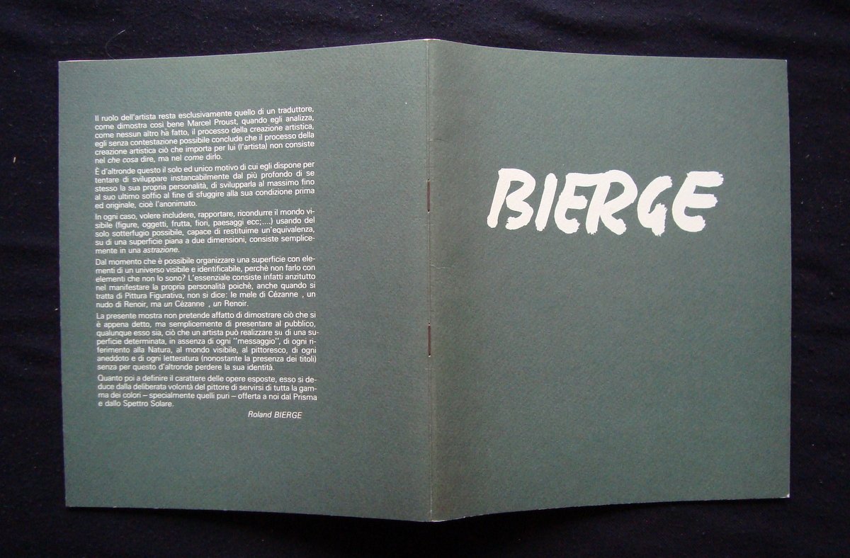 Catalogo, BIERGE Ed. Nova et Vetera , Reggio Emilia, 1985, cm 24x20; pp n.n; br. ed. con belle tavole a colori anche ripiegate. Condizioni di conservazione Esemplare in ottime condizioni. OPEB.4778 blu